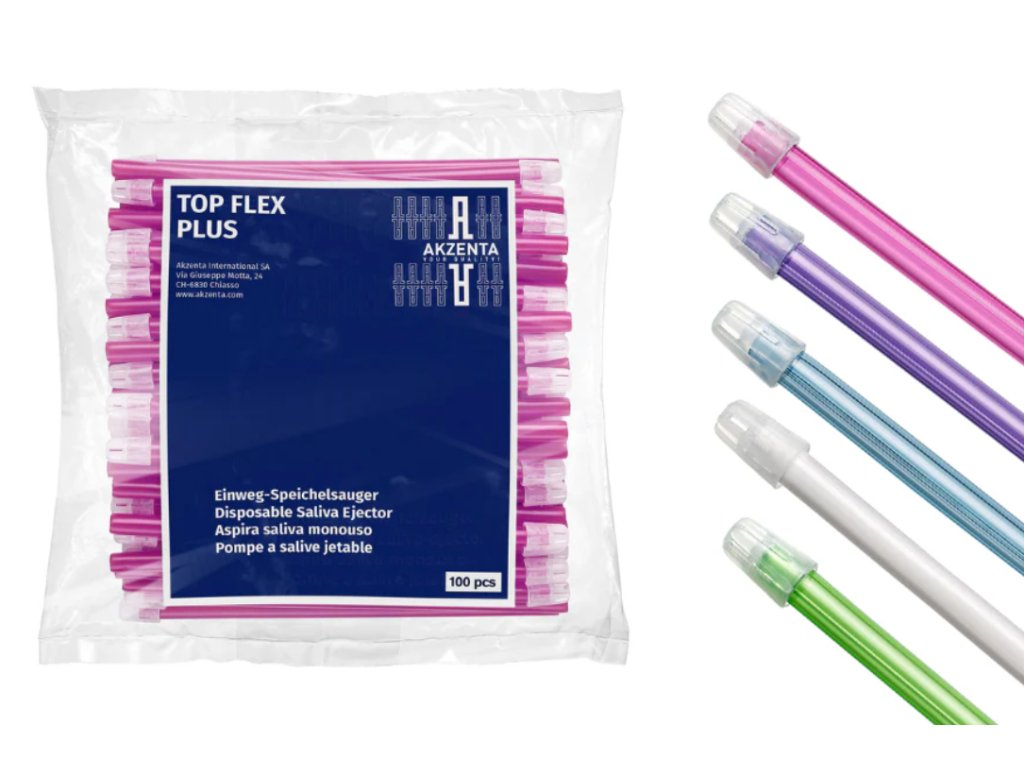 Odsávače Top Flex Plus jsou navrženy tak, aby splňovaly nejpřísnější požadavky na moderní stomatologický spotřební materiál. Oproti standardním verzím nabízí řada Plus hladší povrchovou úpravu a pevnější ukotvení vnitřního drátku, což zabraňuje jeho nechtěnému pohybu nebo protržení stěny savky při extrémním zahnutí.